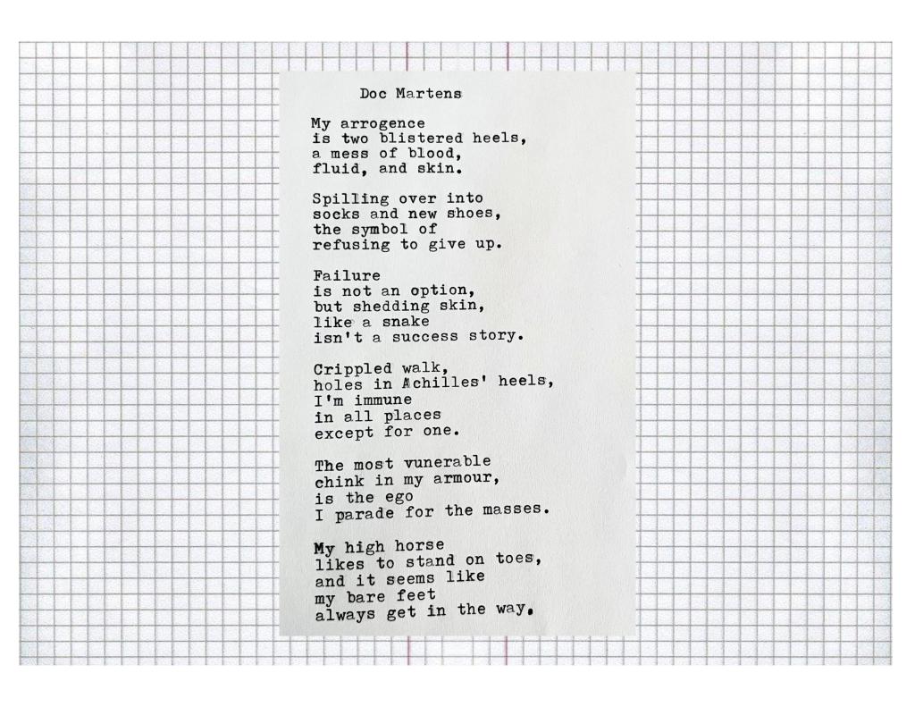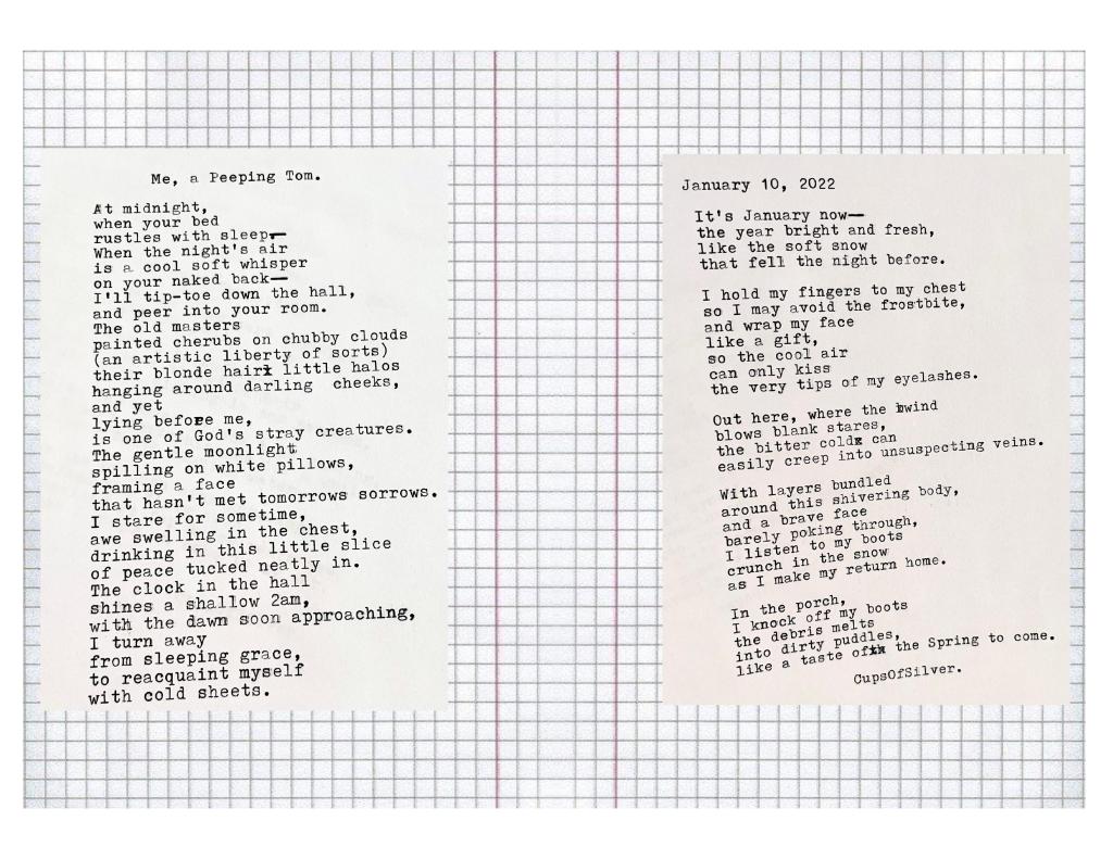 In Misplaced Keys Volume 3, Theo J. Sterling explores a more confessional style of poetry. With a bare bones layout, designed with the help of a 1960s typewriter, Theo recreates a sort of digital journal dedicated to her personal experiences with city, rural, and domestic life. Here the pages are lined, with typewritten poems overlayed to embody of junk journal style of zine.
